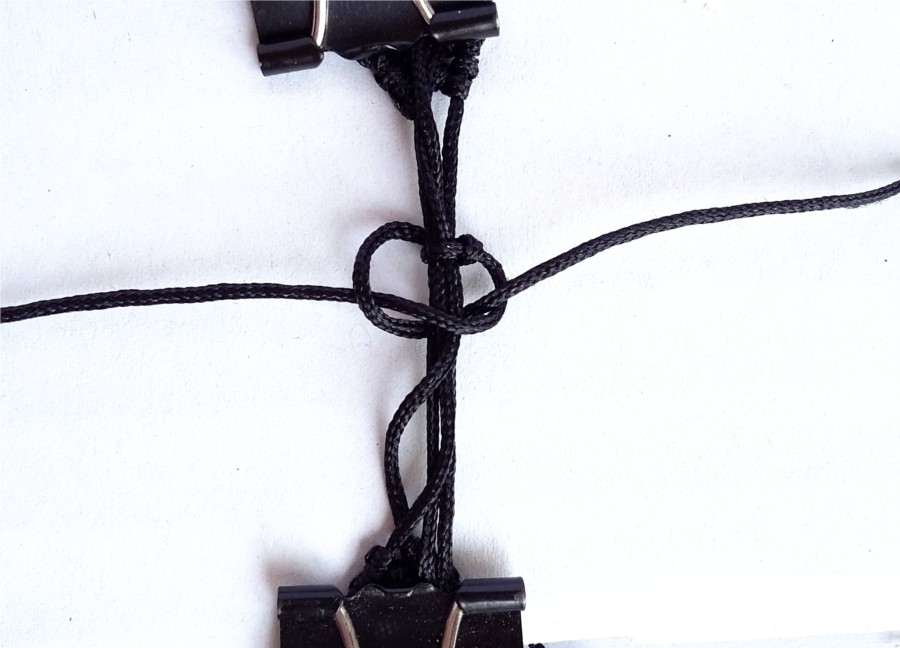 17. Przycinamy nasze sznurki, dociskając jednocześnie nasze ostatnie supełki mocniej.