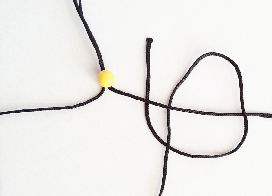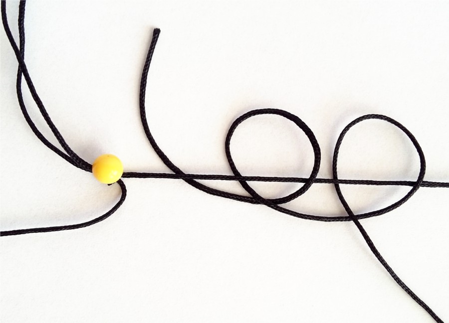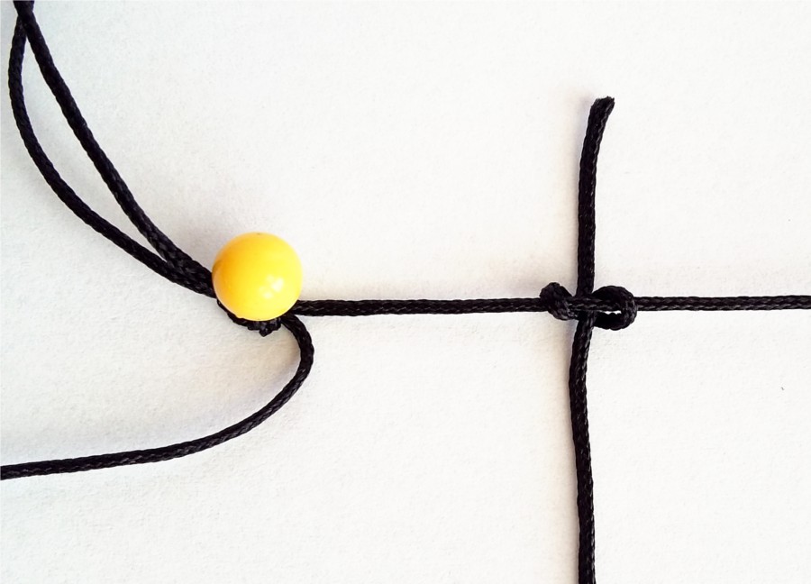 5. Następnie zaciskamy węzeł, przytrzymując nić roboczą, by od góry zostawić około 1 - 2cm sznurka.