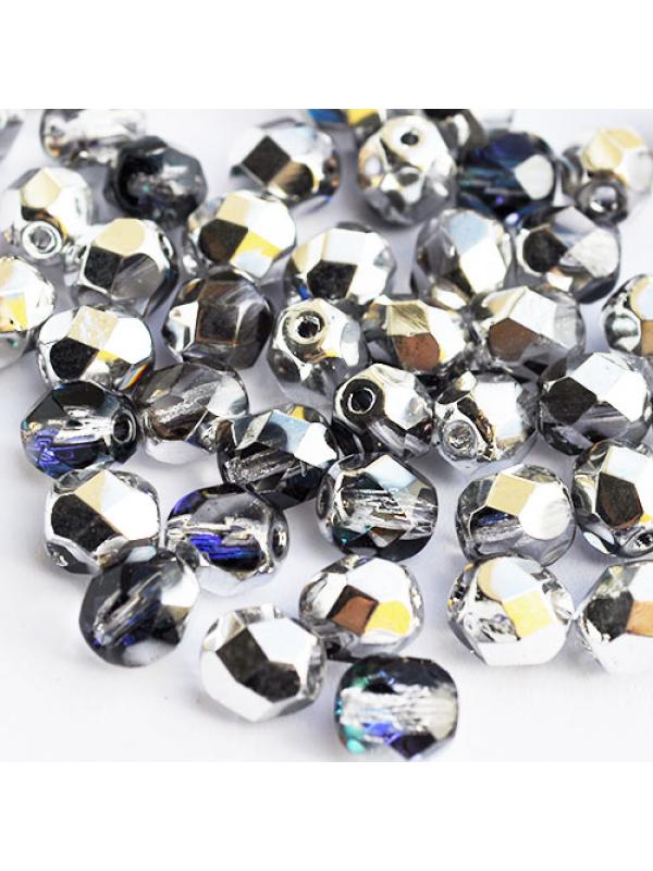 Koraliki czeskie Fire Polished crystal/ heliotrope 6 mm 10 szt.